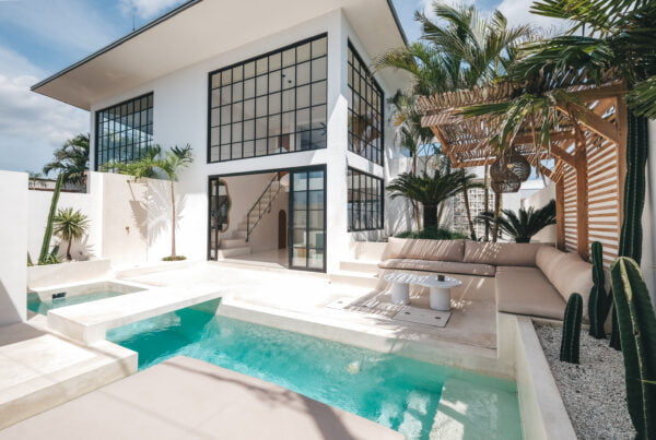 The Yucca villa design has been transformed into a gorgeous residence through the blend of minimalism and Mediterranean style. Neutral earth tones, minimalistic design, natural details, and tropical plants create an amazing holiday ambiance.