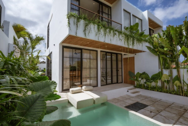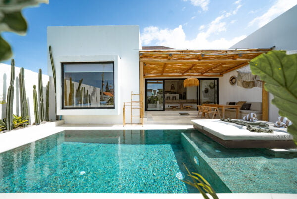The Yucca villa design has been transformed into a gorgeous residence through the blend of minimalism and Mediterranean style. Neutral earth tones, minimalistic design, natural details, and tropical plants create an amazing holiday ambiance.